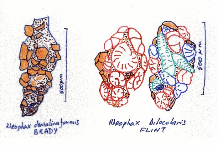 The Agglutinated Foraminifera build their test from grains of sediment. The grains could be quite small, giving it a smooth appearance, or larger with the individual grains being visible under the low power binocular microscopes we use to study them. The test can have just one chamber or many chambers arranged in different patterns.