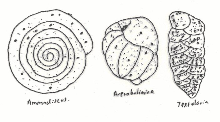 Foraminifera or foraminifers or forams (for short) generally very common in marine post-Palaeozoic rocks. They are quite easy to get out of soft rocks such as clays and marls, but can also be found in loose oolites, shell sands and chalks.