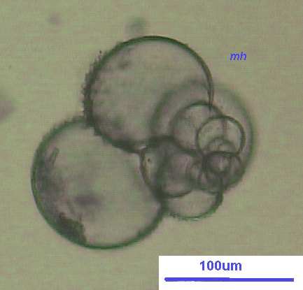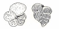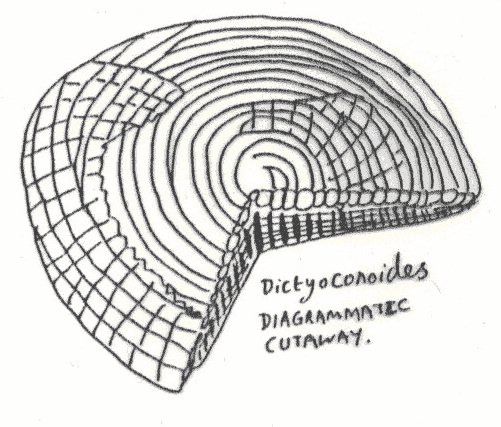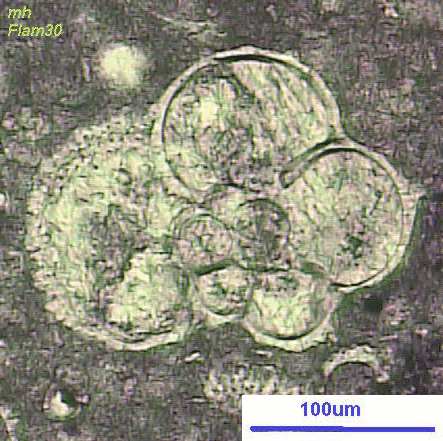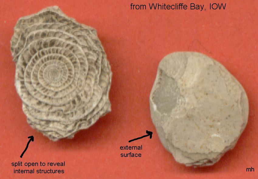 Large Benthic Forams live at the bottom of the sea. They are multi-chambered - very much so, but not very exciting to look at from the outside. They can be up to 15 cm in diameter, and are best studied by opening them up and viewing the internal arrangement of the chambers. They do have the advantage that you can see them with the naked eye and you can photograph them!