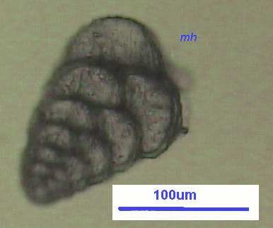 The Planktonic forams float in the sea. They are multi-chambered and tend to have quite lightweight delicate tests. Some develop keels around their edges to weigh them down a bit so they can maintain their position (depth) in the water column.