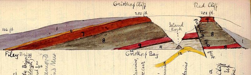 "During the Ipswichian Interglacial, between 128,000 and 116,000 years ago during a warm period the sea cut a new cliff line along the edge of the Yorkshire Wolds as they were then as a result of rising sea levels. As sea levels fell when the warm period began to end and cooler, then cold climatic conditions took over and the cliff line along with its beach and wave cut platform was left exposed to the new conditions and eventually became covered - finally by deposits of boulder clay from an ice lobe which probably arrived then retreated at the end of the last ice age which we know as the Devensian Ice Age.