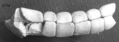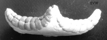 The final episode in the story of "Starfish-building" concerns an amorphous mass of very small starfish ossicles from the Turonian chalk at Hessle which we had found in 1939 and tentatively ascribed to the genus Valettaster known from the south of England. One of us was not satisfied with this identification and, having the time and in those days manual dexterity, removed all the ossicles from the matrix which was hard even by Yorkshire standards. They ranged in size from about 2 to 4 millimetres in breadth and when cleaned turned out to be the remains of several individuals; of two species of Metopaster and three marginals of a Craterasterquinqueloba. Clearly we had another "pellet" on our hands! A number of the ossicles identifiable as M. parkinyoni were plainly of one individual and there were enough to make up a nice little starfish about 17mm along one side of the pentagon (Plate 2, no. 5). The rest of the Metopaster ossicles were typical of Muncatus and judging by their size probably from three individuals. Unfortunately there were not enough of each to restore the originals with as much confidence as in the case of the M. parkinsoni, but they could be mounted in the correct order of upper and lower rows (Plate 2, no. 6). The three Crateraster plates, two supero- and one infero-marginal, were too few for an attempt at reconstruction.